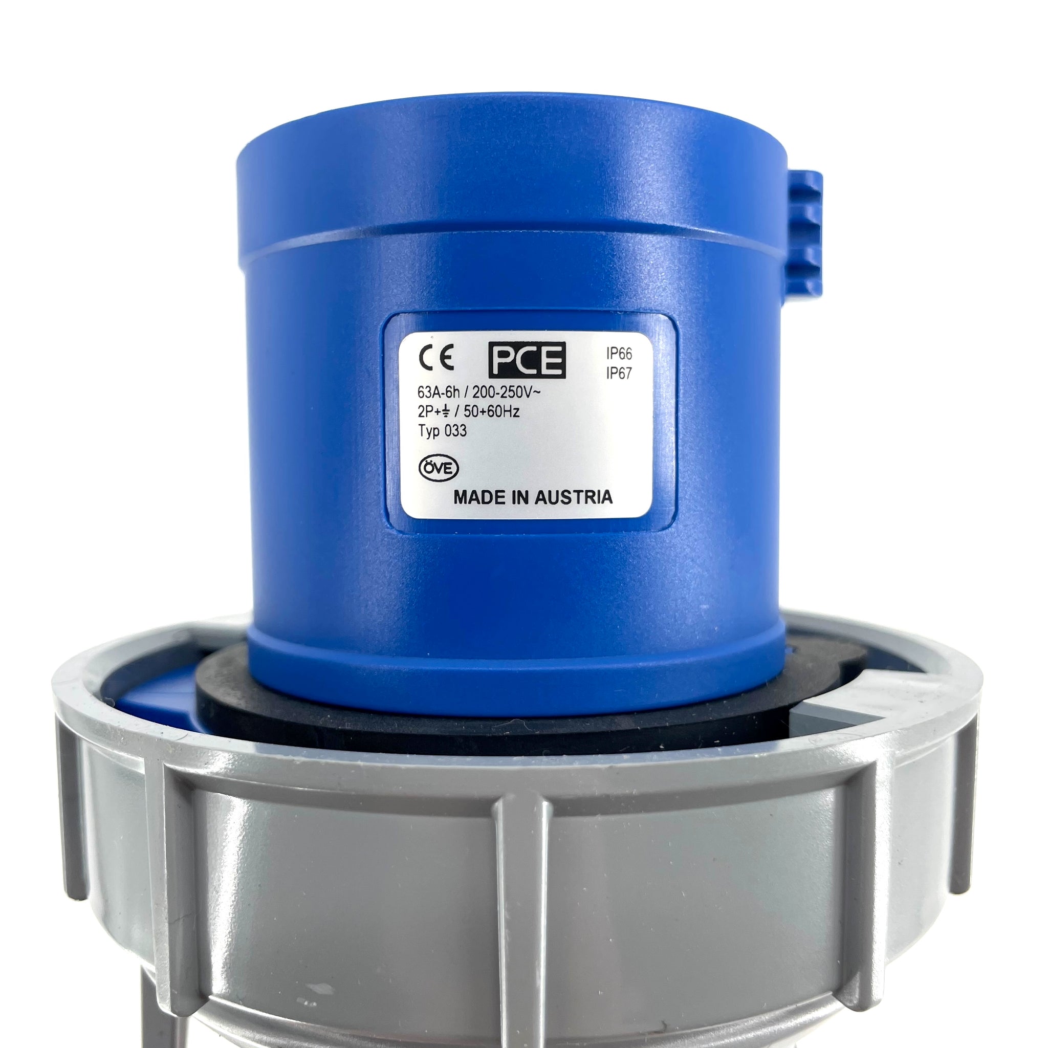 - Socket: PCE 2335-6 230V 63A 2P+E IP67 Blue Socket (Female)