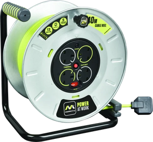 This Masterplug 40 metre metal open cable reel is the professional’s choice when it comes to using portable power. This heavy duty open reel with its large metal drum has been designed and engineered for longevity. This portable cable reel has four shuttered sockets, LED indicator, integrated power switch and a safety thermal cut-out for protection against overloading when fully reeled.