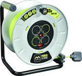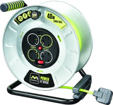 Masterplug Pro-XT 13 Amp 4 Gang Metal Open Reel Mains Extension Lead - PVC Cable - 40m